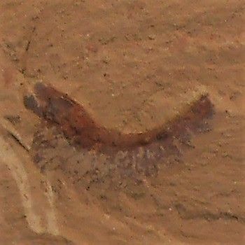 Unidentified species. A complete crab carapace with one pincer. An abstract dated this year indicates that this new species is either Costacopluma maroccana or Ophthalmoplax minimus. Taghit Formation, Campanian Stage, Upper Cretaceous. Dating circa 75 million years old. Merija near Talsint, Morocco, Africa. It measures 23 mm across. Priced at £59. CR 267.
