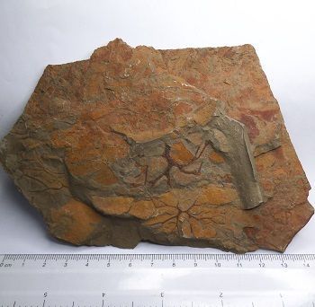 Lopha marshii. Cornbrash, Callovian Stage, Middle Jurassic circa 161 million years old. Peterborough, Cambridgeshire, UK. Size: The scale is shown in (cm) and inches. A rare bivalve as there are currently no exposures of the Cornbrash in the UK. Supplied with label. Priced at £12. SOLD. Quote reference number MS 1327.