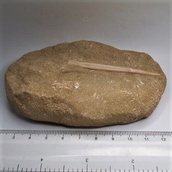 Myliobatis dixoni. An absolutely gorgeous rare tail spine. The scale is shown in (cm). It measures 68 mm or 2 5/8 inches in length. It comes from the Continental Phosphates, Eocene of Oued Zen, Khouribga, Morocco, Africa and dates circa 50 million years old. An excellent display piece. Priced at £34. RYAF 1156.