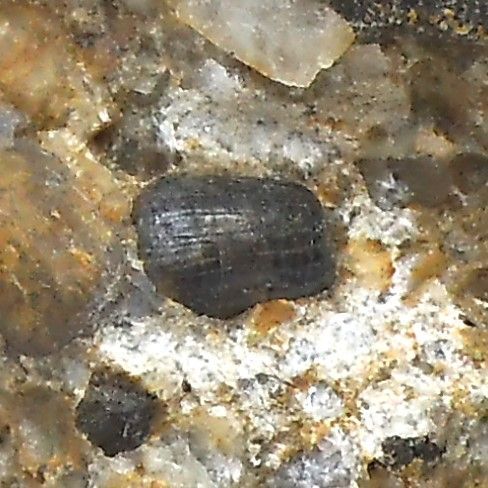 Unidentified Type. This lovely Triassic age reptile jaw fragment is a good specimen measuring 4 mm in length. It is Late Triassic age circa 210 million years old and comes from the Westbury Formation, Penarth Group of Blue Anchor, Somerset, UK. Supplied labelled. Priced at £15. SOLD. Quote reference number R 905.