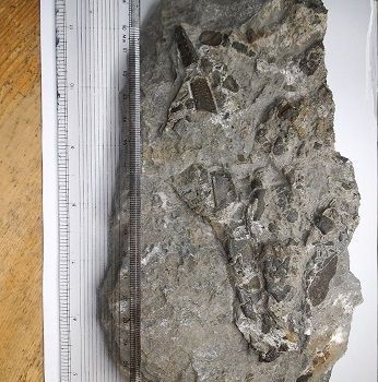 Nemacanthus monilifer. This uncommon complete but disarticulated hybodont shark dorsal spine is a great specimen. This specimen has an calculated length if combined of 125 mm or 5 inches which is very large for an adult! It has good detail and is well presented on original matrix. Has full providence. The scale is shown in (cm). It is Late Triassic age circa 210 million years old and comes from the Westbury Formation, Penarth Group of Somerset, UK. Supplied labelled. Priced at £109. Quote reference number SUKM 4122.