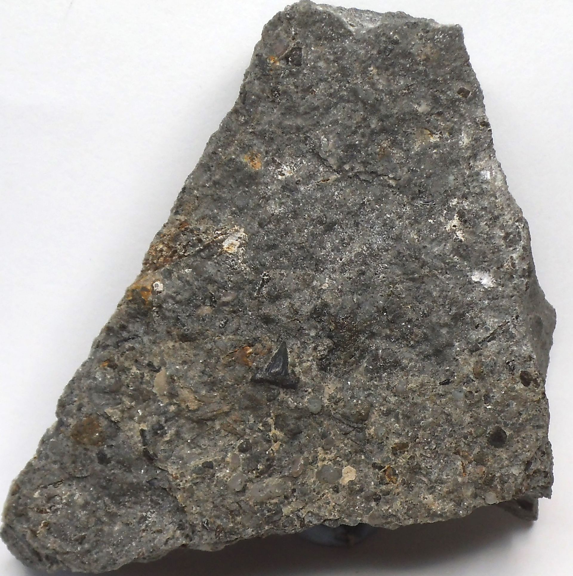 Rhomphaiodon minor. This rooted shark tooth measures 4 mm in height. It is Late Triassic age circa 210 million years old and comes from the Rhaetic Bone Bed, Westbury Formation, Penarth Group of Somerset, UK. Supplied labelled and in an attractive display box. Priced at £6. Quote reference number SUKM 4368.